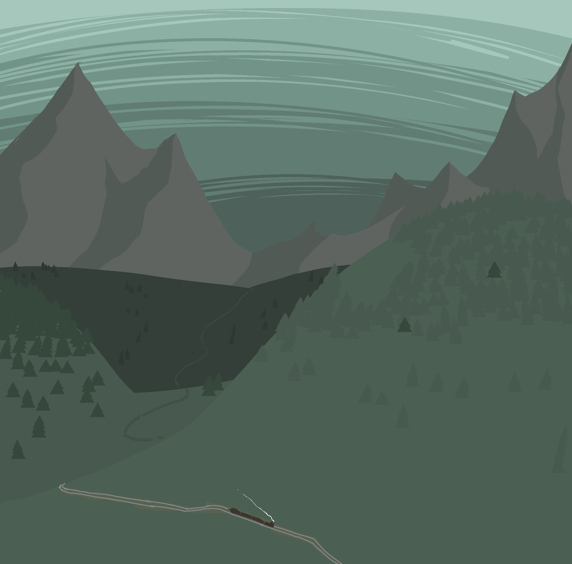 The locomotive rumbles its way through the countryside. You are not its only passenger. It stops on a whim, whenever any unfortunate passenger can gather himself to take the hand of the conductor and plead for him to stop.