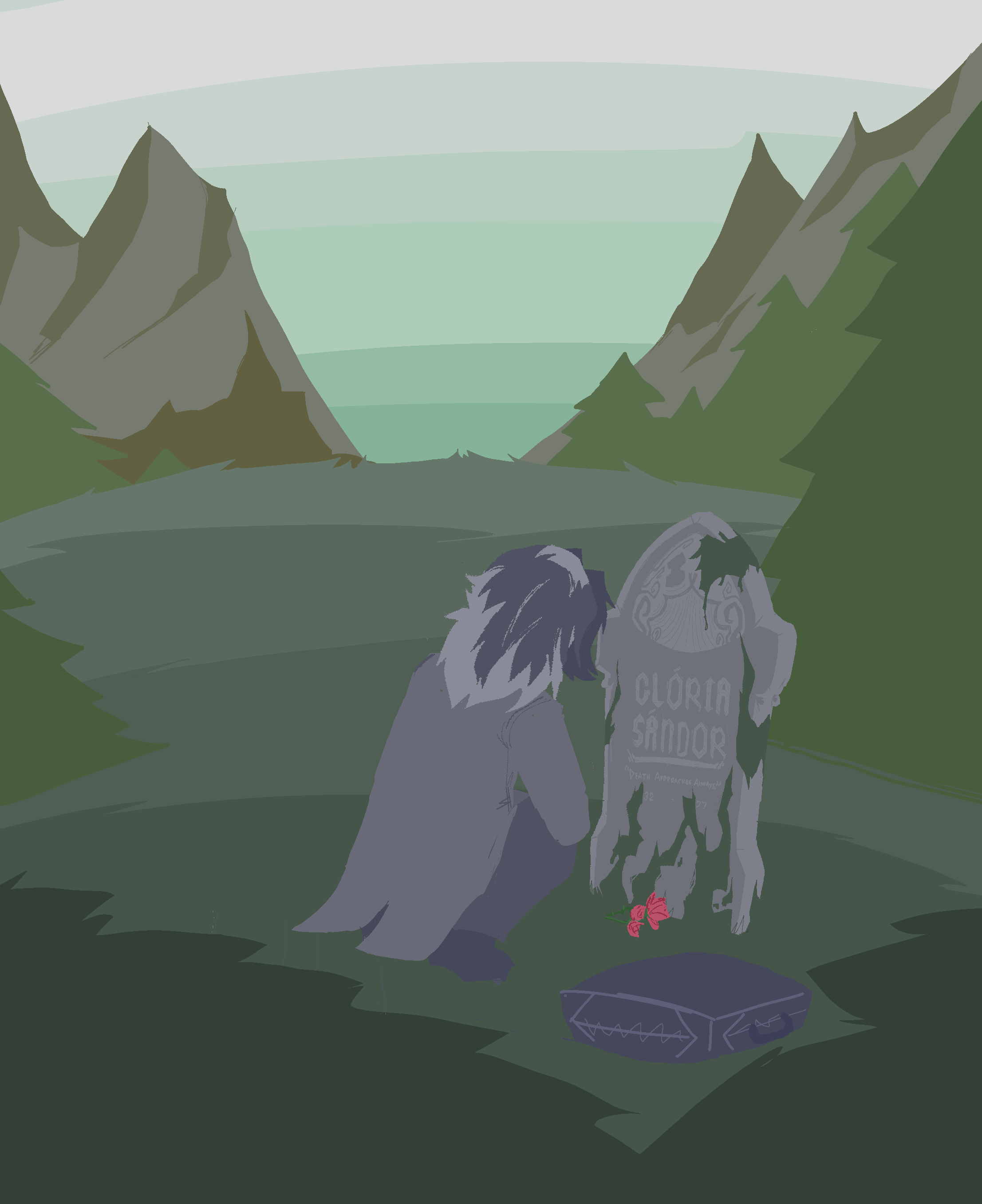 As it draws away behind you, you pad those same steps you've taken once-per-year ever since the palace collapsed. Your eyes unconsciously track the rutted pathway of the now-disused hansom track, recalling what curses you produced as Berius attempted to emancipate the two of you from the thorns upon your first arrival. You needn't think about where you must go. You know it well by now.